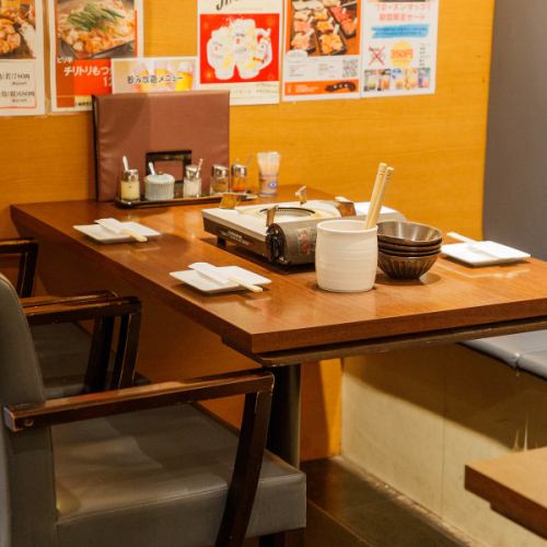 少人数のお食事にも便利です!BOX席はソファーになっており、ゆったりと寛ぎながら本格もつ鍋&七輪焼きをご堪能いただけます。